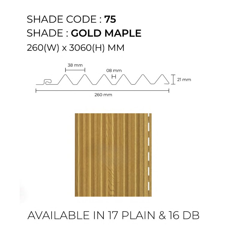 Enhance your interiors with Gold Maple Prism Wall Panels from PARE, perfect for applications as ceiling panels, wall panels, fluted panels, groove panels, and PVC wall panels. Featuring a luxurious Gold Maple shade, these panels offer a refined wooden texture, adding warmth and elegance while ensuring long-lasting durability. ✔ Size: 3060 × 260 mm ✔ Price: Mentioned per square feet ✔ Also Available In: Honey Maple, Danish Teak, Oak Noir, White Mist, Noce Grande, English Nut, Oak Wood Ocre, Spiced Walnut Upgrade your interiors with PARE Wooden Collection Prism Wall Panels today! 📍 Service Areas: ✔ Chennai – Adyar, Anna Nagar, Velachery, T. Nagar, OMR, ECR, Tambaram, Porur, Ambattur, Perungudi, and more! ✔ Nearby Cities – Coimbatore, Bangalore, Hyderabad, and all over India 💡 Visit: smarthomeindia.in 📞 Call us at: 9655009199 | 9655006409