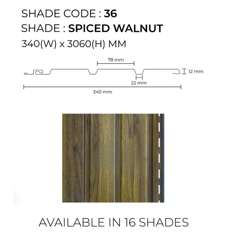 Enhance your interiors with the Spiced Walnut Soffit Panel, designed to offer a rich, warm wood-grain texture for a sophisticated look. This PVC panel is perfect for walls and ceilings in residential and commercial spaces, providing moisture resistance, durability, and easy maintenance. Ideal for both modern and classic decor, it ensures long-lasting elegance. ✅ Available in: Oak Wood Ocre Chestnut Mahogany Royal Nut Ash Wood Grey 📏 Size Available: 340 * 3060 mm 📍 Service Areas: ✔ Chennai – Adyar, Anna Nagar, Velachery, T. Nagar, OMR, ECR, Tambaram, Porur, Ambattur, Perungudi, and more! ✔ Nearby Cities – Coimbatore, Bangalore, Hyderabad, and all over India. 💡 Visit: smarthomeindia.in 📞 Call us at: 9655009199 | 9655006409