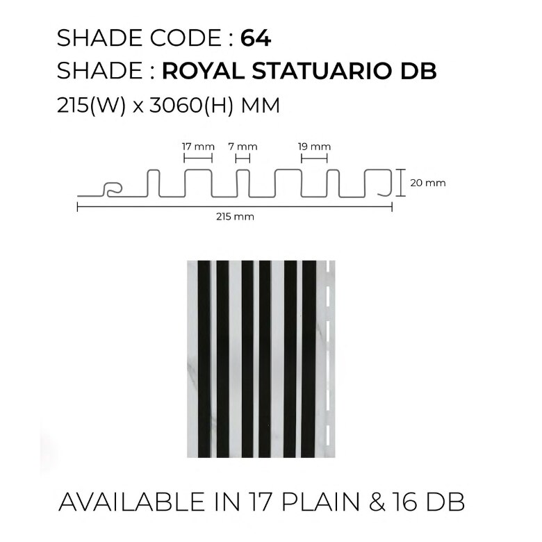 Enhance your interiors with the Royal Statuario Dual Black Stripes Wall Panels from PARE, designed to bring a luxurious marble texture with a Dual Black accent. Part of our Dual Black Collection, this panel features a stunning Royal Statuario Dual Black shade, adding elegance and a timeless appeal to any space. Built for durability and premium aesthetics, it is available in a standard size of 3060x215mm and is priced per piece for easy customization. Also available in Armani Grey Dual Black and Portoro Dual Black to complement various interior styles. Upgrade your space with high-quality PARE Dual Black Collection Wall Panels today! 📍 Service Areas: ✔ Chennai – Adyar, Anna Nagar, Velachery, T. Nagar, OMR, ECR, Tambaram, Porur, Ambattur, Perungudi, and more! ✔ Nearby Cities – Coimbatore, Bangalore, Hyderabad, and all over India 💡 Visit: smarthomeindia.in 📞 Call us at: 9655009199 | 9655006409