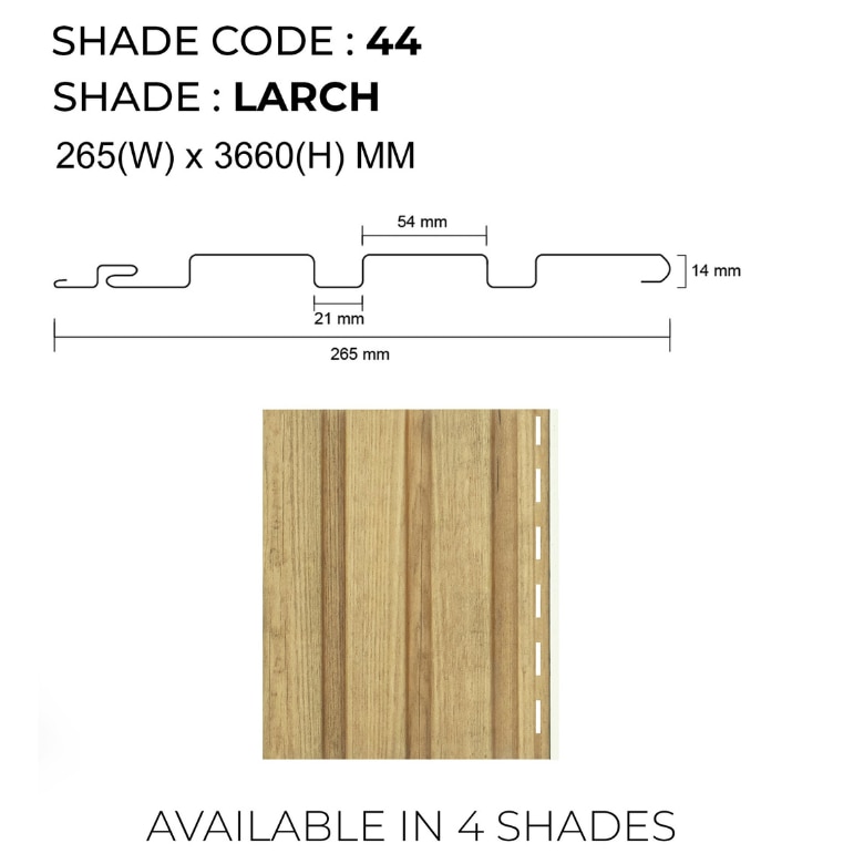 Upgrade your interiors with the Larch Stretta Panels, crafted to bring a natural and elegant wooden touch to any space. With its high durability and easy maintenance, this paneling solution is perfect for both residential and commercial applications. Key Features: ✅ Authentic Larch Wood Finish – Elegant texture with a natural aesthetic ✅ Durable & Long-Lasting – Built for high-performance and longevity ✅ Low Maintenance – Easy to clean and maintain over time ✅ Multi-Purpose Usage – Ideal for feature walls, ceilings, and partitions ✅ Effortless Installation – Designed for quick and seamless fitting Specifications: 📏 Size: 3660mm x 265mm 💰 Price: Mentioned per piece Available Colors: Larch Imperial Nut Artisan Oak Dark Teak Perfect For: 🏡 Home Interiors – Living rooms, bedrooms, and decorative accent walls 🏢 Office & Workspaces – Boardrooms, cabins, and corporate settings 🏬 Commercial Spaces – Hotels, restaurants, showrooms, and retail outlets Service Areas: We provide services across Chennai, Tamil Nadu, and India, including locations like Madurai, Tiruchirappalli, Salem, Coimbatore, Pune, Delhi, Bangalore, Kochi, Mumbai, and more!