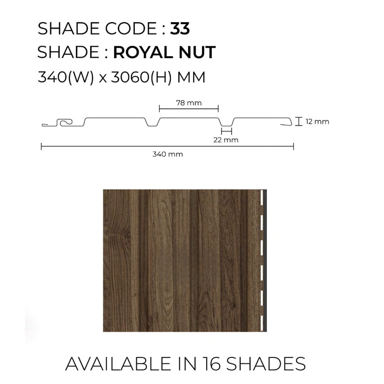 Bring a touch of elegance to your interiors with the Royal Nut Soffit Panel. This PVC panel features a rich wood-grain texture, making it an ideal choice for modern walls and ceilings. With moisture resistance, durability, and easy maintenance, it is perfect for residential and commercial applications. ✅ Available in: Oak Wood Ocre Chestnut Mahogany Ash Wood Grey Spiced Walnut 📏 Size Available: 340 * 3060 mm 📍 Service Areas: ✔ Chennai – Adyar, Anna Nagar, Velachery, T. Nagar, OMR, ECR, Tambaram, Porur, Ambattur, Perungudi, and more! ✔ Nearby Cities – Coimbatore, Bangalore, Hyderabad, and all over India. 💡 Visit: smarthomeindia.in 📞 Call us at: 9655009199 | 9655006409