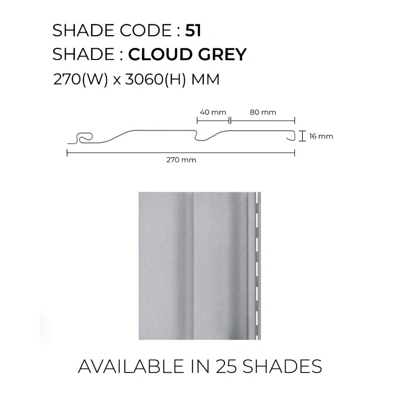 Introduce a serene and contemporary vibe to your interiors with Cloud Grey Wave Panels. The subtle, light grey hue combined with the soft wave texture creates an elegant, calming atmosphere in any room. These panels are perfect for those who seek a minimalist aesthetic with a touch of sophistication. Ideal for residential, commercial, and office spaces, they enhance the look of any setting while offering durability and ease of maintenance. Key Features: ✅ Subtle Cloud Grey Finish – A light, neutral tone that brings a fresh, airy feel to any space ✅ Long-Lasting Durability – Backed by a 10-year warranty for reliable and lasting quality ✅ Easy to Maintain – Simple to clean and maintain, ensuring your panels look pristine for years ✅ Versatile Use – Ideal for both residential and commercial interiors ✅ Hassle-Free Installation – Quick and easy installation process Specifications: 📏 Size: 3060mm x 270mm 🛠️ Warranty: 10 Years 💰 Price: Mentioned per square foot Available Colors: Snow White Mocha Mint Green Forest Green Sky Blue Steel Blue Light Grey Cloud Grey Perfect For: 🏡 Residential Interiors – Bedrooms, living rooms, dining areas, and hallways 🏢 Commercial Interiors – Office spaces, conference rooms, lounges, and more 🏬 Retail Spaces – Showrooms, boutiques, and stores Cloud Grey Wave Panels add a subtle yet impactful aesthetic to your interiors, providing a smooth and calming visual appeal. Perfect for anyone looking to refresh their walls with elegance and modern design. Servicing Areas: We proudly offer our services in Chennai, Tamil Nadu, and across India, including Coimbatore, Madurai, Trichy, Salem, Delhi, Mumbai, Bangalore, Hyderabad, Pune, and many more!