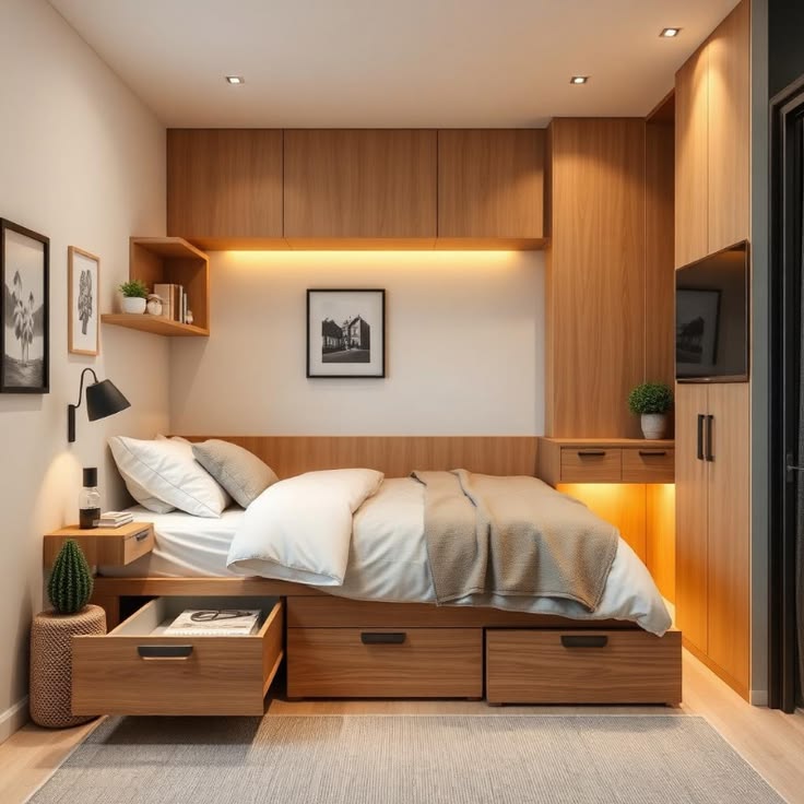 Here’s a conceptual representation of a modern smart bedroom layout that focuses on simplicity, functionality, and automation readiness:
