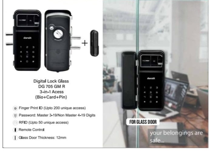 Enhance security with the Digital Glass Door Lock DG 705 GM R, featuring a 3-in-1 access system (Fingerprint, RFID Card & PIN). Designed for glass doors (12mm thickness), this sleek and modern keyless entry system is ideal for offices, co-working spaces, and modern homes. 🔹 Fingerprint Access (Stores up to 200 unique IDs) 🔹 PIN Code (Master: 3-19 digits | Non-Master: 4-19 digits) 🔹 RFID Card Access (Up to 50 unique cards) 🔹 Remote Control for Convenient Unlocking 🔹 Premium Glass Door Compatibility 📍 Available in Chennai & Nearby Cities 📞 Call Now: 9655006069 🌐 Visit Us: smarthomeindia.in